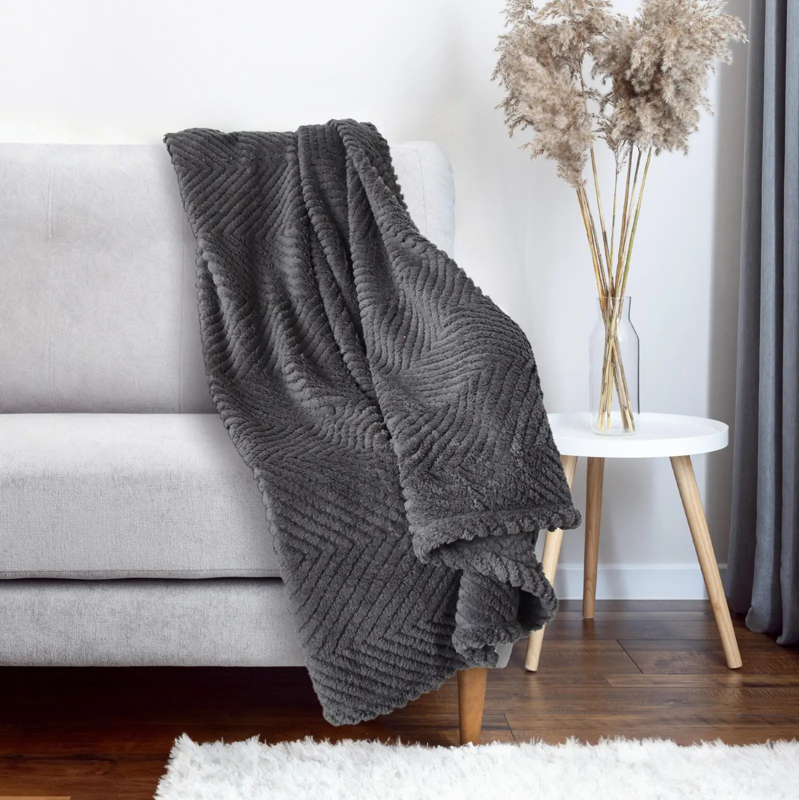 Прегърнете уюта с това изключително меко плюшено одеяло в стилен графитен цвят. Неговата интересна релефна структура придава модерен и изискан вид на всеки интериор, докато пухкавата материя ви осигурява незаменима топлина през хладните дни. Този модел е идеалният завършек за вашата спалня или хол.